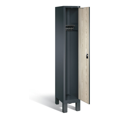 C+P Garderobenschrank Evolo, H1850xB320xT500mm, Front Dekor Sen-Esche, Korpus Anthrazitgrau (48010-10)