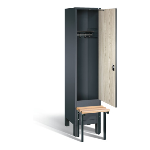 inkl. MwSt.C+P Garderobenschrank Evolo, H1850xB420xT815mm, Front Dekor Sen-Esche, Korpus Anthrazitgrau, Gestell Schwarzgrau (48030-12)