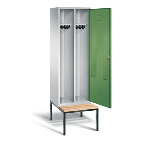 inkl. MwSt.C+P Schwarz-Weiss-Spind Classic, H2090xB610xT815mm, Front Resedagrün, Korpus Lichtgrau, Gestell Schwarzgrau (8250-20)