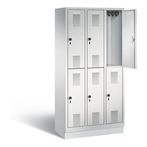 • Doppelstöckiger Stahl-Garderobenschrank Evolo, 3 Abteile mit je 2 Fächern