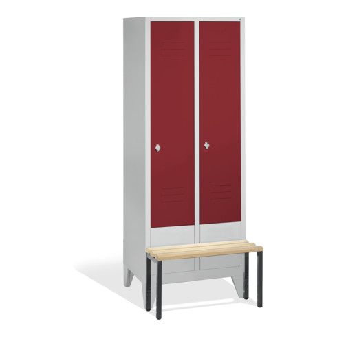 C+P Umkleidespind Classic auf Sockel 4 Abteile Front Rubinrot Korpus Lichtgrau