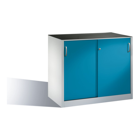 C+P Werkzeug-Beistellschrank mit Schiebetüren innen 1 Boden Front Lichtblau Korpus Lichtgrau