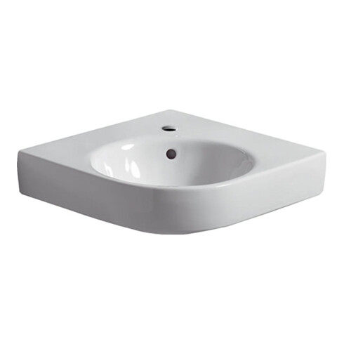 Geberit Eck-Waschtisch Renova Compact 69,5x61,5cm, m Hahnl., m Überlauf, weiß