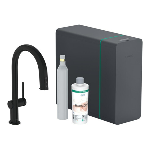 inkl. MwSt.hansgrohe Spültisch-Einhebelmischer Aqittura M91 SodaSys 210, Ausl, Start Set, matt-sw