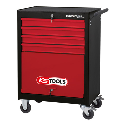 KS Tools BASICline Werkstattwagen, schwarz/rot