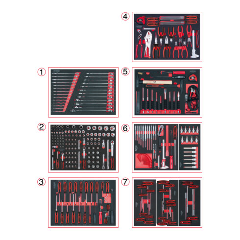KS Tools Universal-Systemeinlagen-Satz für 7 Schubladen mit 269 Premium-Werkzeugen