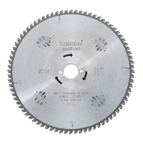 Metabo Kreissägeblatt HW/CT 210 x 30 x 2,6/1,8 Zähnezahl 54 Flachzahn/Trapezzahn Spanwinkel 5° neg.
