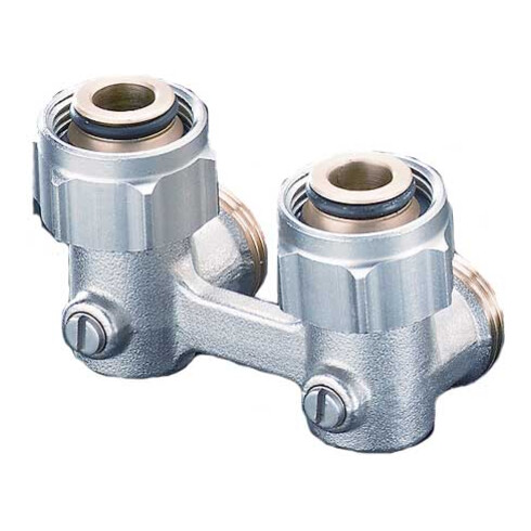Oventrop Hahnblock Multiflex F G 3/4 ÜMxG 3/4 AG, Eck, MS vernickelt