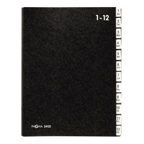 PAGNA Pultordner 24121-04 DIN A4 1-12/Jan-Dez 12Fächer Hartpappe sw