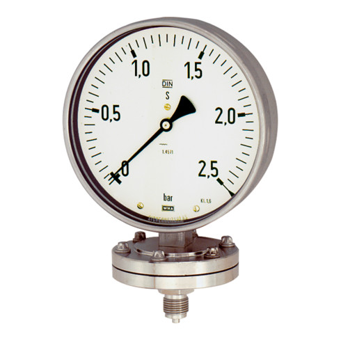 - Plattenfedermanometer, Chemieausführung, Anschluss radial unten, G 1/2, Typ 432.50, Güteklasse 1,6, Messber. 0 - 10,0 bar, Ø 100. Plattenfedermanometer in Robust- bzw. Chemieausführung