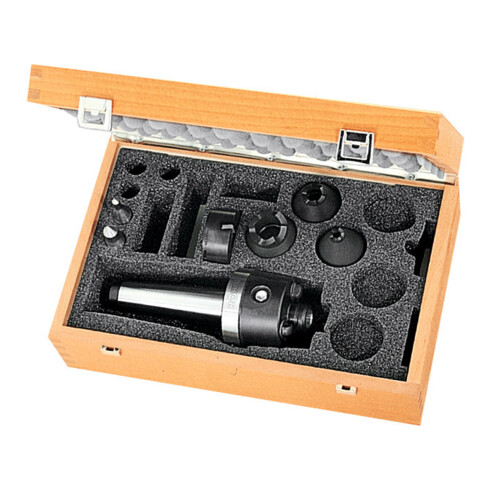 - Spitzenwinkel 60°, Spannkreis-⌀ 8 − 80 mm.Ein vorgespanntes, axial verstellbares Tellerfederpaket, gleicht unterschiedliche Zentrumstiefen aus.Die Spitze lässt sich problemlos nachschleifen.