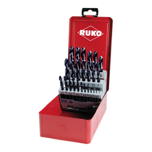 RUKO Spiralbohrersatz DIN 338 Typ VA HSSE Co 8 TiAlN in Industriekassette 25-teilig