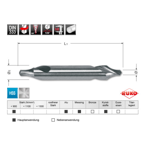 Ruko Zentrierbohrer DIN 333 HSS Form R HSS