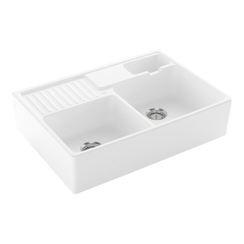 V&B Spülstein-Doppelbecken Restesch., m Abl., Hand., st. wh. C-plus