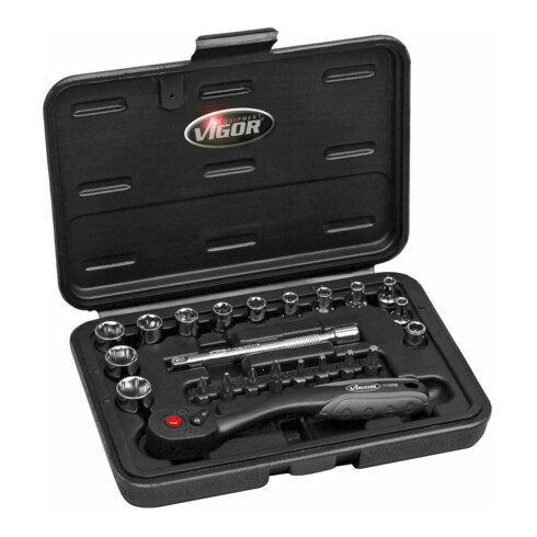 VIGOR Innenvierkant Antrieb 6,3 = 1/4 Zoll Steckschlüssel-Satz V3734 Vierkant hohl 6,3 mm (1/4 Zoll) Außen-Sechskant Profil Anzahl Werkzeuge: 23
